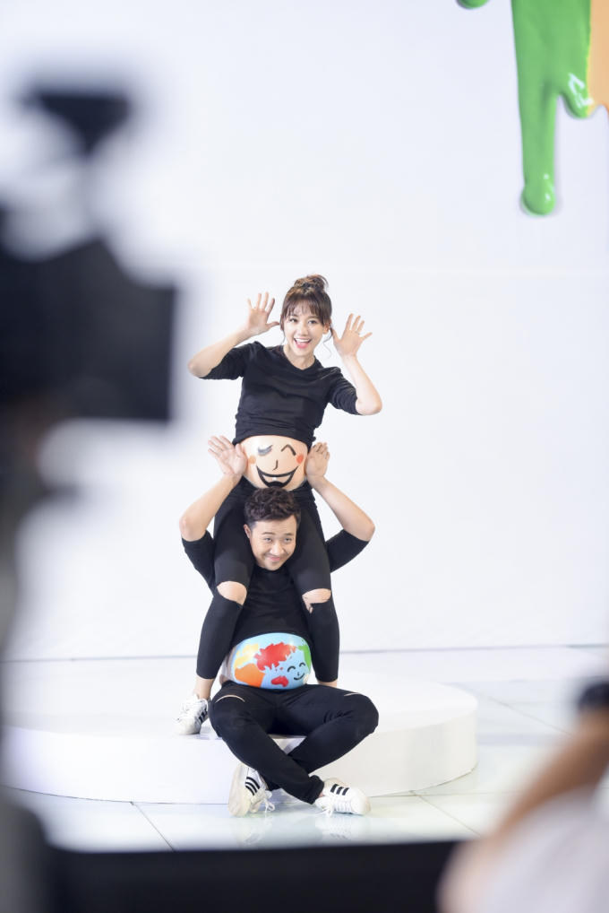 Trường Giang vẽ lên bụng bầu của Hương Giang hình ảnh gương mặt người phụ nữ, tuy nhiên trong lúc vẻ Hương Giang nhận xét "Cái gì Trường Giang không giỏi thì rất né tránh làm" và cả hai đã có màn tranh cãi về việc này, Trường Giang lý giải khi đã vẽ không đẹp thì càng sửa càng xấu.