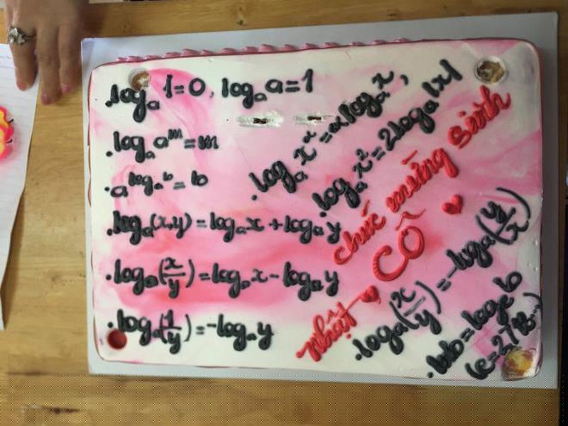 Chiếc bánh dày đặc công thức logarit này chắc hẳn sẽ khiến thầy cô khó quên. (Ảnh: Ngọc Ánh)