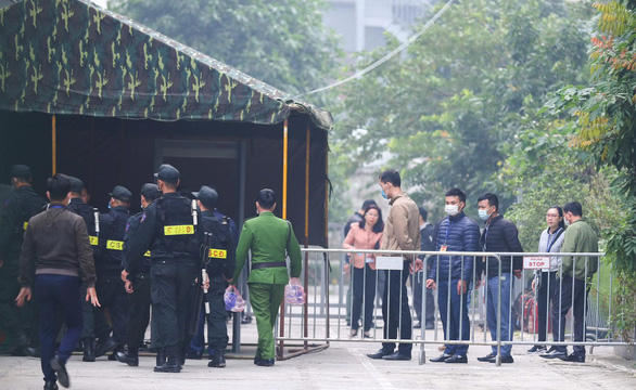 Cảnh sát dựng lều dã chiến trước phòng xét cựu chủ tịch Hà Nội Nguyễn Đức Chung - Ảnh: Tuổi trẻ