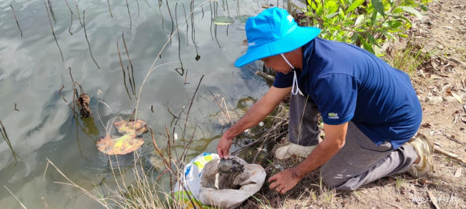 Ông Minh bỏ cá chết vào bao tải, chôn ngược xuống ao gây trương sình, ô nhiễm nguồn nước.