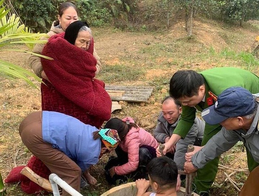 Chị Lê Thị Bích H., con gái bà Lã Thị T. (SN 1937, trú tại thôn An Lộc A, xã An Khang, TP Tuyên Quang, tỉnh Tuyên Quang) cho biết, sáng ngày 14/2, chị phát hiện mẹ mình rơi xuống giếng nước sau nhà, mực nước sâu khoảng 5m. Gia đình chị H. lập tức báo Công an xã An Khang ứng cứu.