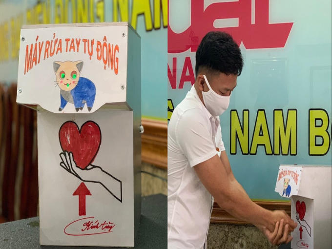 Cựu giáo viên, chế máy rửa tay tự động mang đi tặng