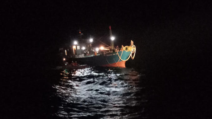 Sau nhiều giờ hành trình vượt sóng gió xuyên đêm, lúc 2h30' ngày 23/1, lực lượng cứu nạn đã tiếp cận tàu cá QB 91386 TS. Một tổ công tác đã được lệnh dùng ca nô tiếp cận, tiến hành hỗ trợ tàu cá bơm nước chống chìm, khắc phục sự cố, đồng thời chăm sóc y tế, ổn định tinh thần cho thuyền viên.