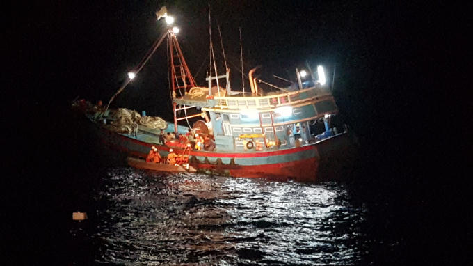 Sau nhiều giờ hành trình, lúc 20h45' cùng ngày, lực lượng cứu nạn hàng hải đã tiếp cận được tàu QNg 98848 TS, ê kíp nhân viên cứu nạn cùng y bác sỹ được triển khai lên tàu QNg 98848 TS để cấp cứu cho nạn nhân.