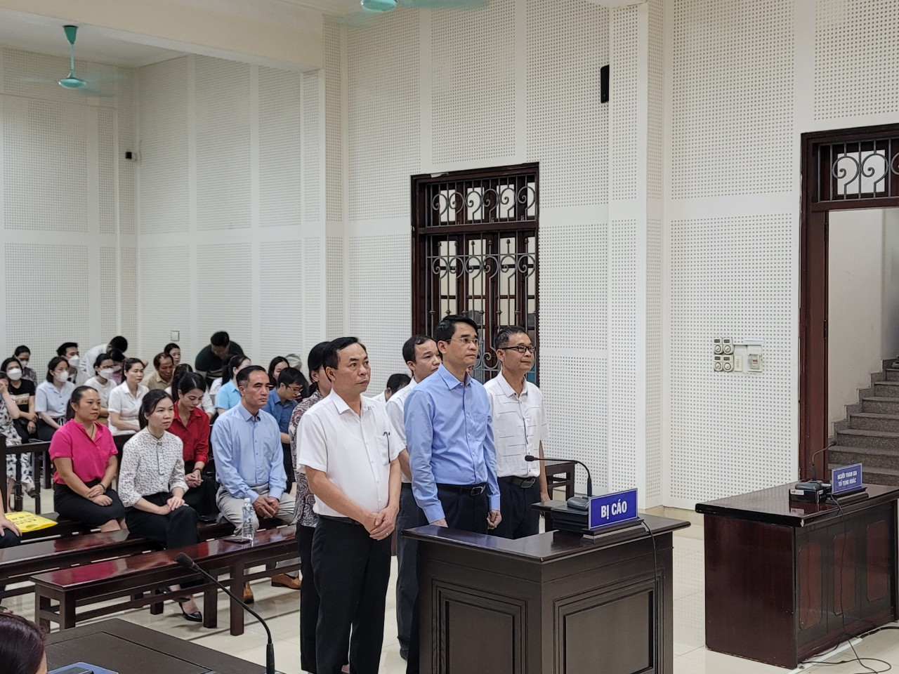 Cựu Phó Chủ tịch UBND tỉnh Quảng Ninh Phạm Minh Thành ( giữa) cùng các bị cáo.