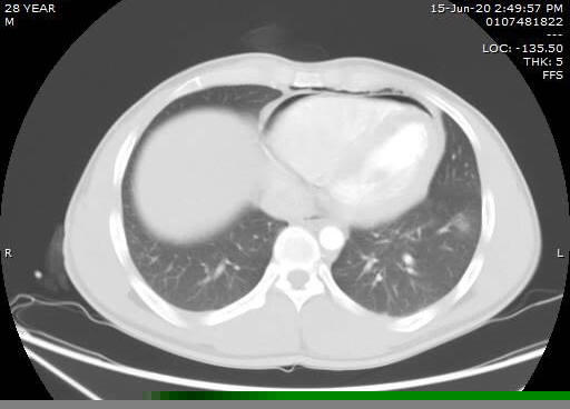 Hình ảnh chụp cắt lớp tràn khí và dịch khoang màng tim của bệnh nhân B.(ảnh BV.QN)