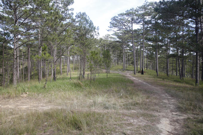 Chúng tôi theo chân ông Nguyễn Đình Trưởng (Phó Giám đốc Công ty Hùng Phát) để xuống tận khu vực DA được cấp phép, cách trung tâm TP Đà Lạt theo đường quốc lộ 20 cũ chừng 15 km, nằm gần cuối xã Xuân Thọ. Men theo một con đường bê tông nhỏ khoảng 1m do người dân làm để đi vào vườn khoảng hơn 2 km là đến khu vực trung tâm của DA. Và con đường dã chiến này sẽ được lấy làm tim để thi công đường vào Công viên Vĩnh hằng viên, dự kiến rộng khoảng hơn 10m. Ở khu vực sẽ là vòng xoay giao thông - trung tâm của DA thì rừng thông trồng khá thưa, cây phổ biến có đường kính 20-30 cm và có nhiều khoảng đất trống sẽ được tận dụng để thi công các hạng mục.