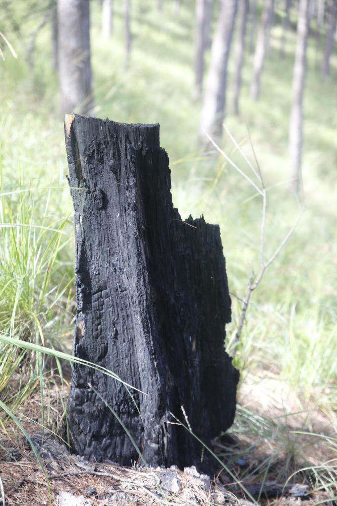 Băng qua phía tay phải chừng vài trăm mét chúng tôi bắt gặp một vườn cà phê xâm canh của người dân địa phương đã cho thu hoạch, anh Trưởng giải thích thêm là trong phạm vi DA chỉ có khoảng 2 ha đất vườn của người dân cần phải bồi thường, hỗ trợ. Không khó để nhận ra một số gốc thông bị người dân đốt, hạ để khai thác ngo (dầu) trơ gốc đen nhẻm. Anh Trưởng chỉ cho chúng tôi xem có một số vườn của người dân ở sâu phía trong không thuộc phạm vi DA đang trồng cà phê, rau, hoa và có cả một con đường đất ở phía dưới do người dân tự mở từ ngoài đường quốc lộ 20 vào để xe ô tô chở nông sản ra. Có lẽ nếu không có DA Công viên Vĩnh Hằng thì 5-10 năm sau, diện tích đất rừng ở đây cũng sẽ bị thu hẹp khi người dân khai phá tiếp để làm vườn.