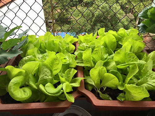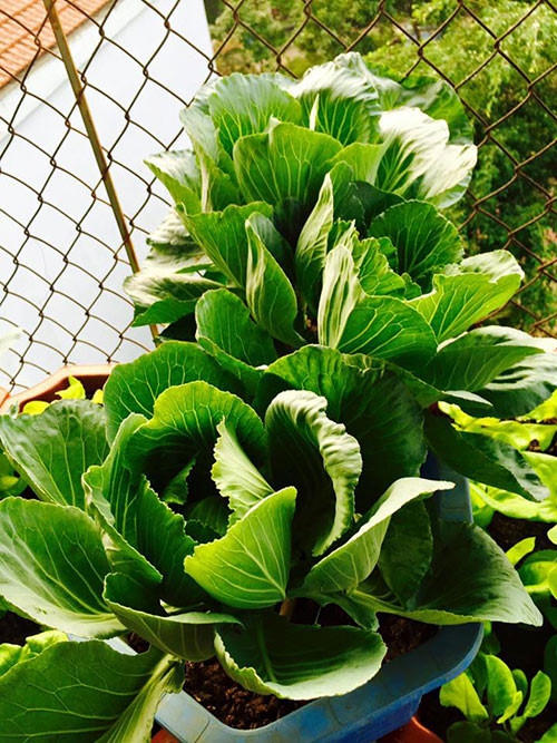 Hơn 2 năm gieo trồng, chị Hòa trồng đủ các loại rau theo mùa, rau ưa thích như mồng tơi, rau đay, rau rền, rau muống, xu hào, bắp cải, xà lách và các loại rau gia vị. Ngoài ra, chị trồng thêm loại cây họ nhà leo: dưa chuột, mướp đắng, đậu cô ve, ớt Mỹ, cà chua bi,…