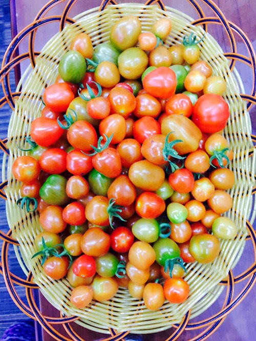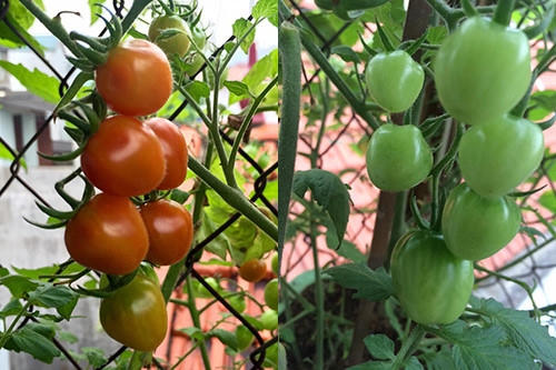 Chị kể: “Vụ đông năm ngoái, mình trồng 26 cây cà chua bi cho quả sai trĩu. Khi thu hoạch, mình hái được gần 20kg cà chua ăn sống và làm salad”.