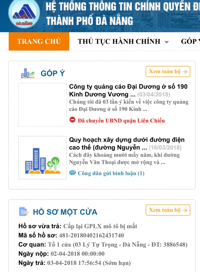 Tuy nhiên, đến nay trên Cổng góp ý - Hệ thống thông tin chính quyền điện tử thành phố chưa thấy Trung tâm Thông tin dịch vụ công Đà Nẵng cung cấp thêm thông tin phản hồi nào từ Công an TP Đà Nẵng về trường hợp này.