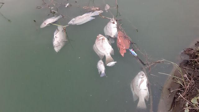 Ghi nhận của PV tại khu vực nói trên, vào sáng 18/4, người dân ở xung quanh phát hiện tình trạng dòng nước dưới kênh bất ngờ đổi màu xanh, bốc mùi hôi thối. Đáng chú ý, đã có hiện tượng cá chết nổi lềnh bềnh trên mặt nước.