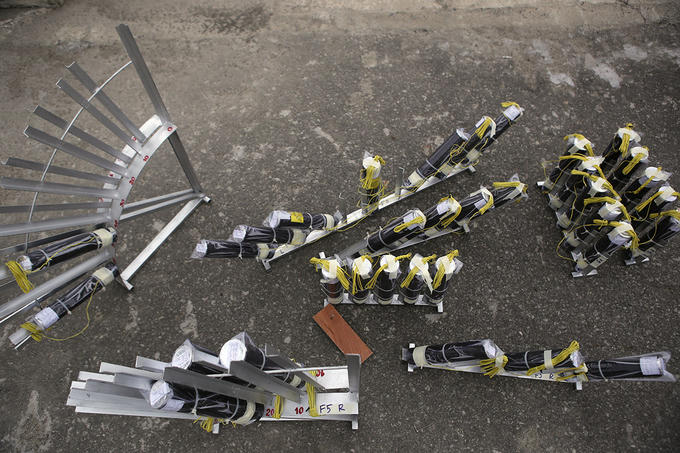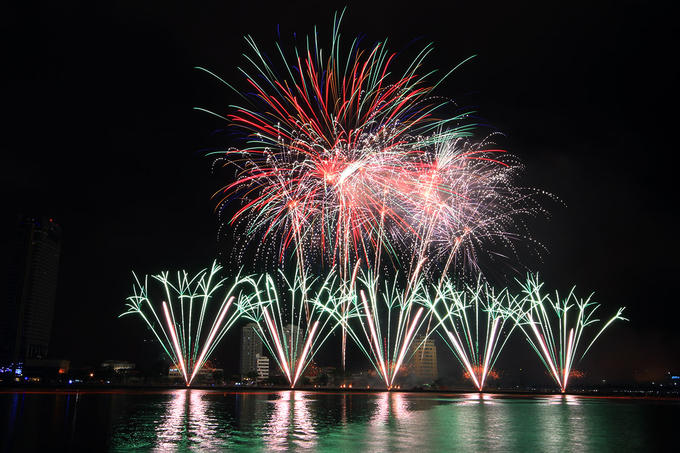Hàng nghìn quả pháo của đội chủ nhà Việt Nam và đội Áo đã được đặt vào ống phóng trên bãi bên sông Hàn, chờ khai hỏa tối 30/4.