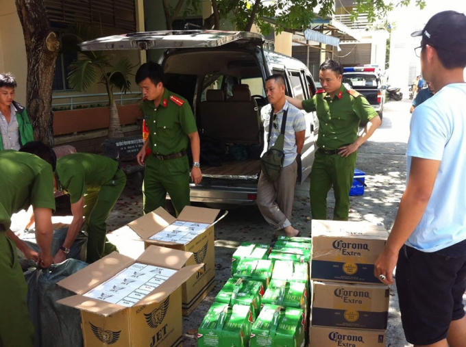 Hai đối tượng đã dùng xe ô tô BKS 43A-190.68 chở 4.710 bao thuốc lá… không có giấy tờ chứng minh nguồn gốc xuất xứ và nhiều thùng bia nhãn hiệu nước ngoài.