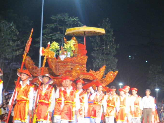 | Đội rước kiệu phường Vân Phú - Vùng đất đã được ghi vào sử sách với những địa danh, gắn với những truyền thuyết lịch sử. (ảnh: Thu Hường) |