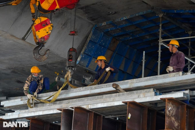 "Sáng ngày 28/10, chúng tôi tiến hành hợp long đốt cuối cùng của hạng mục vòm thép. Hệ thống cầu dẫn cũng đã cơ bản hoàn thành và đang triển khai thi công hạ tầng các nút giao thông của dự án", ông Nguyễn Minh Đức cho biết thêm.