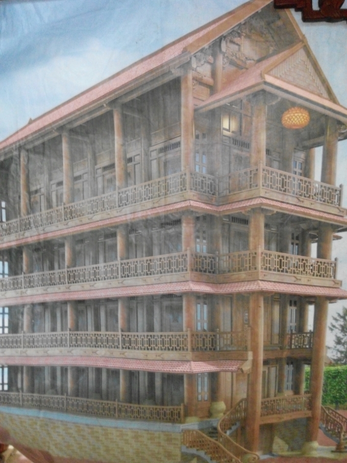 | Bản phác thảo ngôi nhà gỗ 5 tầng khi hoàn thiện của ông Nguyễn Văn Lân. |