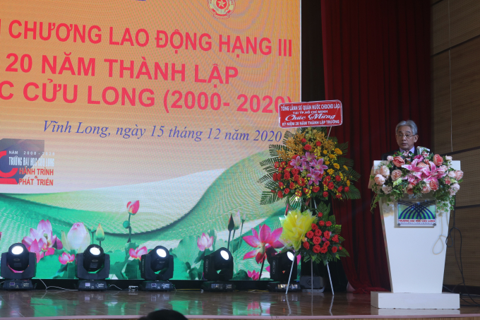 PGS. TS Lương Minh Cừ - Hiệu trưởng trường Đại học Cửu Long phát biểu tại buổi lễ.
