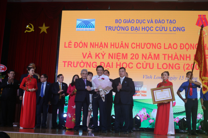 Ban Lãnh đạo trường Đại học Cửu Long nhận Huân Chương Lao động hạng III của Chủ Tịch Nước và Bằng khen của Thủ tướng Chính phủ.