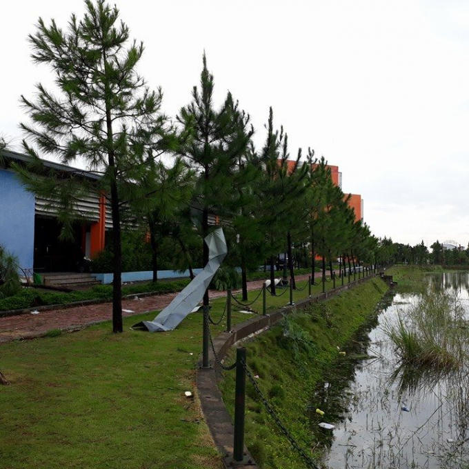 Đặc biệt mái tôn của khu vực căng tin của trường bị tốc mái cuốn theo nhiều miếng tôn sắt. Đồi thông nhân tạo một trong những hình ảnh đẹp tại trường FPT cũng đã bị đổ rạp.