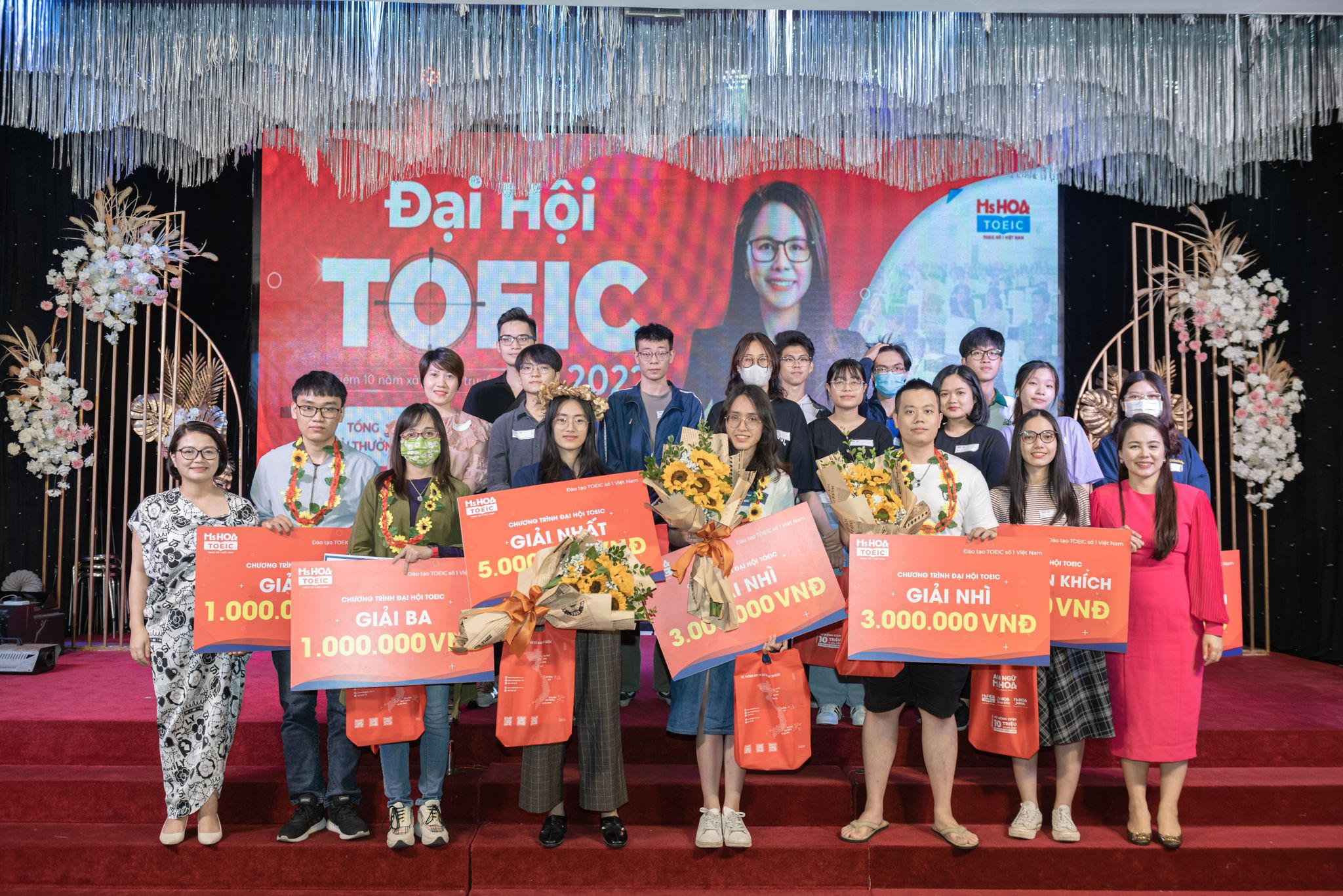 Đại hội năm nay được tổ chức tại hai thành phố lớn là Hà Nội và TP HCM với quy mô lên tới 1.000 người tham gia. Các thí sinh tham gia có cơ hội nhận giải thưởng và quà tặng với tổng giá trị lên tới 100 triệu đồng gồm: Một giải Nhất trị giá 5 triệu đồng tiền mặt và học bổng tiếng Anh 100% áp dụng khi đăng ký khóa học bất kỳ tại Ms Hoa TOEIC; hai giải Nhì mỗi giải trị giá 3 triệu đồng tiền mặt và học bổng tiếng Anh 50%; ba giải Ba mỗi giải trị giá 1 triệu đồng tiền mặt và học bổng tiếng Anh 30%; bốn giải Khuyến khích mỗi giải trị giá 500.000 đồng tiền mặt và học bổng tiếng Anh 30%.