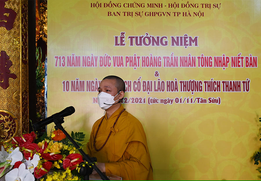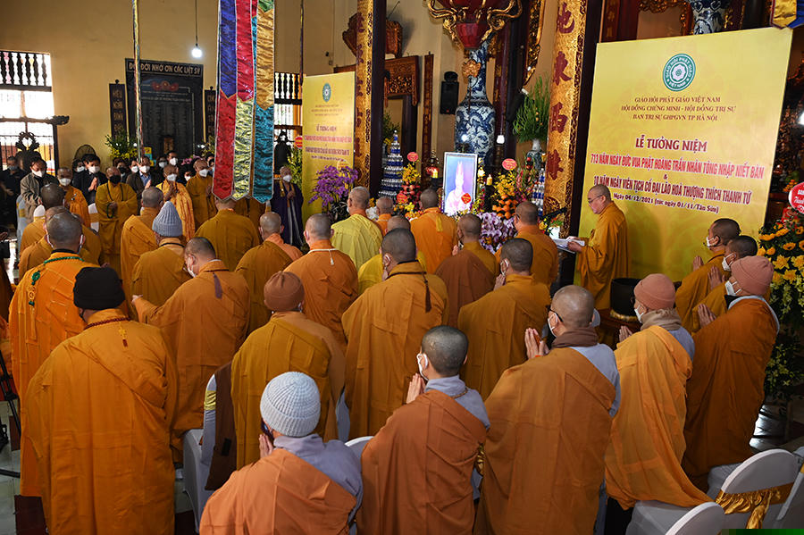 Sáng ngày 4/12/2021 (nhằm ngày Mùng 1 tháng 11 năm Tân Sửu), tại Trụ sở GHPGVN, chùa Quán Sứ - Hà Nội, Hội đồng chứng minh – Hội đồng trị sự GHPGVN phối hợp Ban trị sự GHPGVN Thành phố Hà Nội long trọng tổ chức Đại lễ tưởng niệm lần thứ 713 Đức vua - Phật hoàng Trần Nhân Tông nhập Niết bàn và 10 năm ngày cố Trưởng lão Hòa thượng Thích Thanh Tứ, nguyên Phó Chủ tịch Thường trực HĐTS GHPGVN viên tịch.