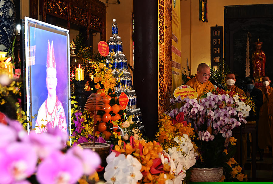 Chư tôn đức cùng toàn thể đạo tràng nhất tâm hướng về 10 phương Tam bảo để cầu nguyện Giác linh Trưởng lão Hòa thượng cao đăng Phật quốc; cầu nguyện quốc thái dân an, mưa thuận gió hòa; Phật nhật tăng huy, Pháp luân thường chuyển; dịch bệnh tiêu trừ, nhân dân an lạc.