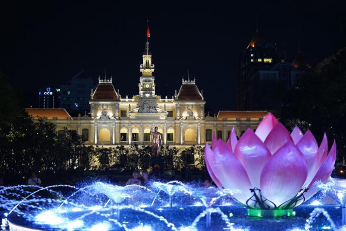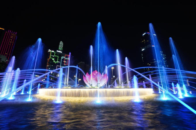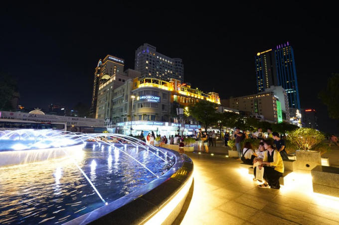 Đài nước trên đường Nguyễn Huệ sẽ phun nước biểu diễn hàng đêm