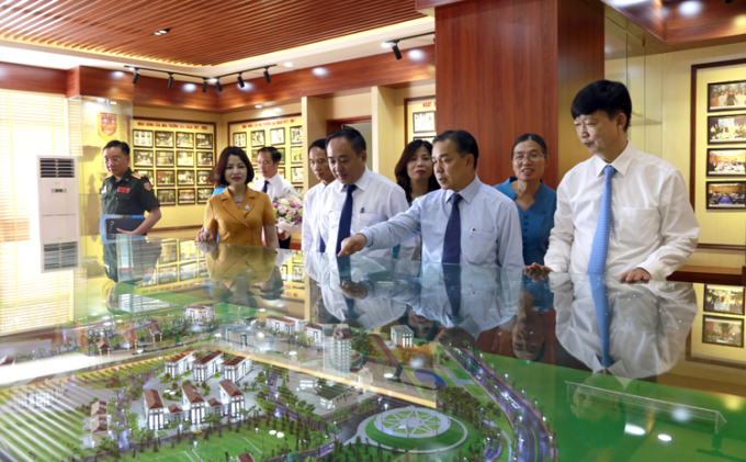 Đại sứ đặc mệnh toàn quyền nước CHDCND Lào Sẻng-Phết Hùng-Bun-Nhuông tham quan Trường Đại học Hùng Vương. (Ảnh: Báo Phú Thọ)