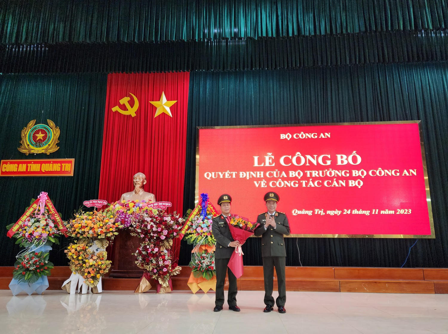Ngày 24/11/2023, tại Quảng Trị, Bộ Công an tổ chức lễ công bố các quyết định của Bộ trưởng Bộ Công an về công tác cán bộ.