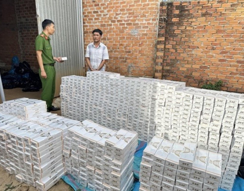 Theo nguồn tin trên trước đó, ngày 8/12, qua công tác nắm tình hình, tổ công tác của Phòng Cảnh sát kinh tế phát hiện, bắt quả tang đối tượng Võ Văn Thao (SN 1974, trú phường Thiện An, thị xã Buôn Hồ) có hành vi điều khiển xe ô tô biển số 47C-199.46 vận chuyển 9.700 bao thuốc lá nhãn hiệu JET đang chuyển vào kho tại địa chỉ số 16 Nguyễn Thị Minh Khai (phường An Bình, thị xã Buôn Hồ, tỉnh Đắk Lắk).