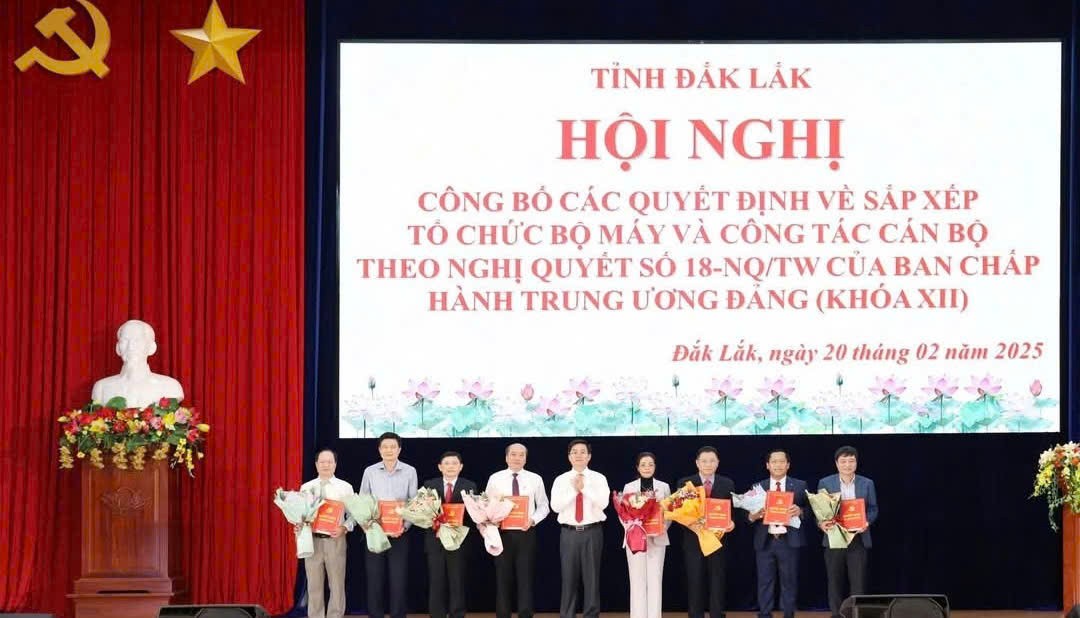 Ngày 20/2, Ban Thường vụ Tỉnh ủy Đắk Lắk tổ chức công bố các quyết định về tổ chức bộ máy và cán bộ thuộc diện Ban Thường vụ Tỉnh ủy quản lý theo Nghị quyết số 18-NQ/TW của Ban Chấp hành Trung ương Đảng khóa XII.