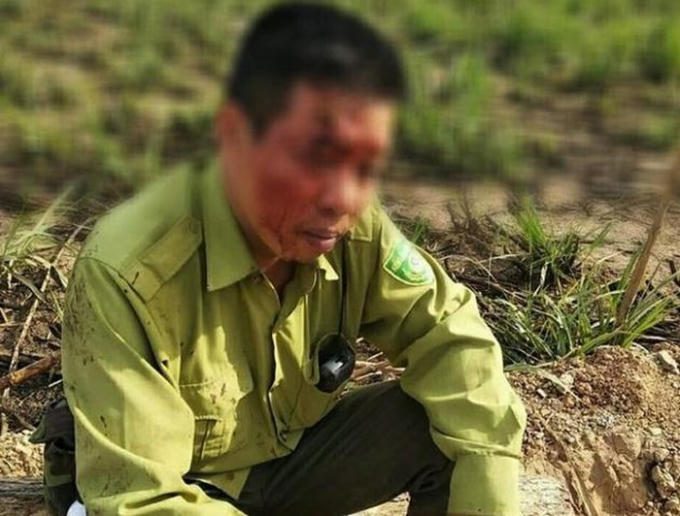 Khi phát hiện lực lượng chức năng, đối tượng đã dùng gậy tre ném trúng vào đầu 1 kiểm lâm, khiến người này phải nhập viện.
