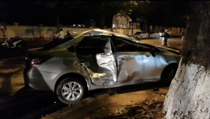 | Chiếc ô tô bị hư hỏng nặng sau cú va chạm. |