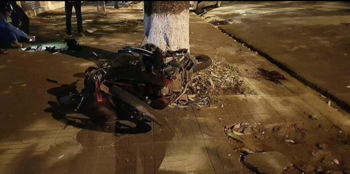 | Chiếc xe máy cũng bị hư hỏng nặng. |