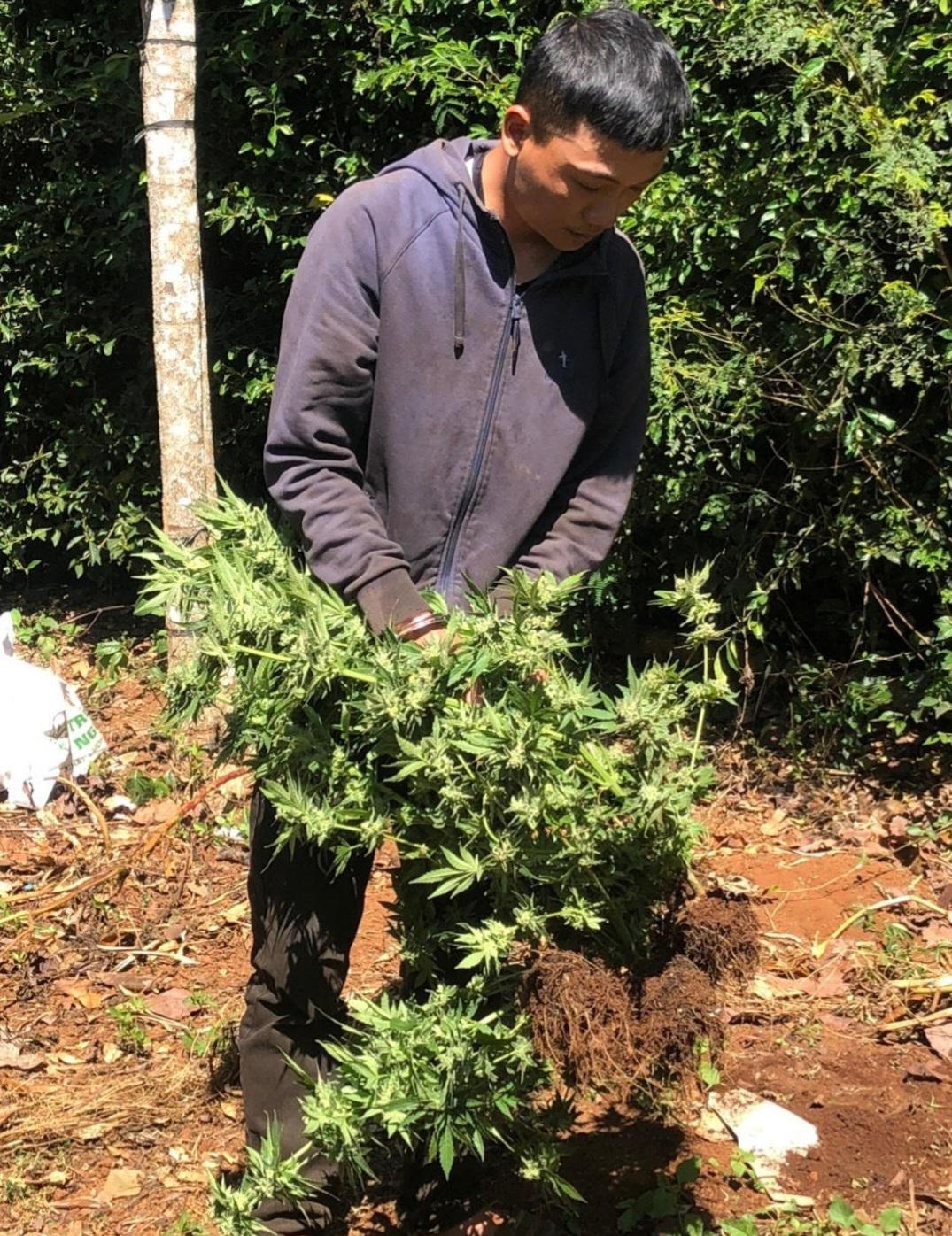 Cao Minh Dương thừa nhận đã trồng trái phép số cây cần sa trên. (Ảnh: Công an Buôn Hồ)