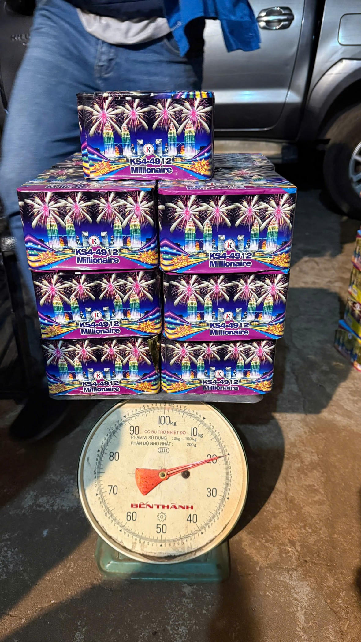 Kiểm tra kỹ khu vực này, công an thu giữ 114 khối hình hộp chữ nhật, bên ngoài in chữ nước ngoài, với tổng trọng lượng hơn 190kg. Đạt khai nhận toàn bộ số hàng trên là pháo hoa nổ.