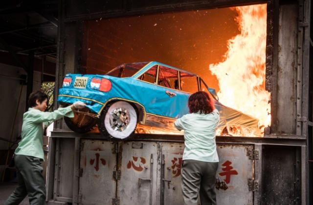 Trên đường vào chở cát, thấy động chiếc xe bèn nằm lại bên đường.