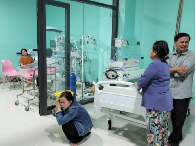 Cũng theo chị Hà, đến 13h40 phút cùng ngày, trong lúc cháu H. đang ngủ thì điều dưỡng vào cho thở khí dung. Lúc này, H. khóc ré lên, mặt tím tái nên gia đình gỡ bộ thở ra khỏi miệng cháu. Thấy nhân viên y tế đang đứng đó, chị Hà đã bế con bỏ chạy ra ngoài thì bị nhân viên kéo lại, tiếp tục bắt thở khí dung mặc cho gia đình van xin.