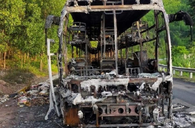 Đắk Lắk: Xe khách chở 40 người bất ngờ bốc cháy trơ khung