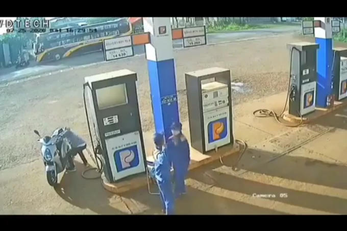 Lúc này 2 nhân viên của 1 cây xăng trên địa bàn đùa giỡn nhau khiến 1 cọc tiền từ túi quần rơi xuống đất. Lúc này, có 1 người đàn ông đi xe máy đến và phát hiện cọc tiền thì dừng xe che chắn và lượm cọc tiền rồi bỏ đi.