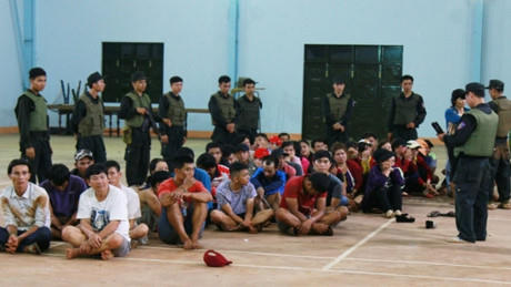 Tại thời điểm bắt giữ, có gần 100 đối tượng đang say sưa sát phạt bằng hình thức xóc đĩa ăn tiền, trong đó có gần 40 đối tượng là nữ giới.