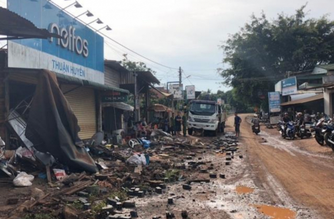 Hiện trường vụ tai nạn giao thông tại khu chợ tự phát trên Quốc lộ 14 đoạn qua huyện Krông Buk.