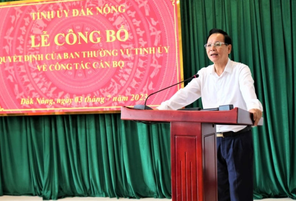 Ông Ngô Thanh Danh- Bí thư Tỉnh ủy Đắk Nông chủ trì buổi lễ công bố quyết định. Ảnh: Vũ Long