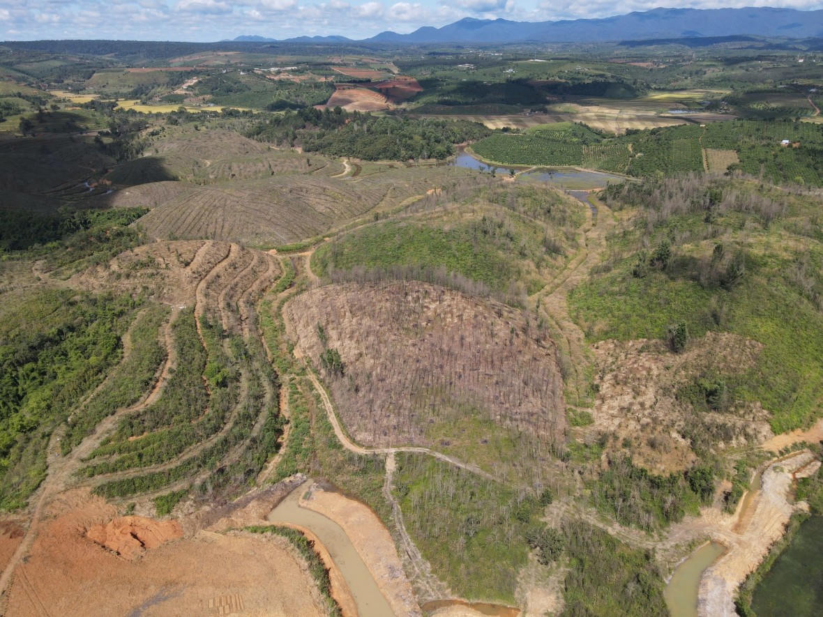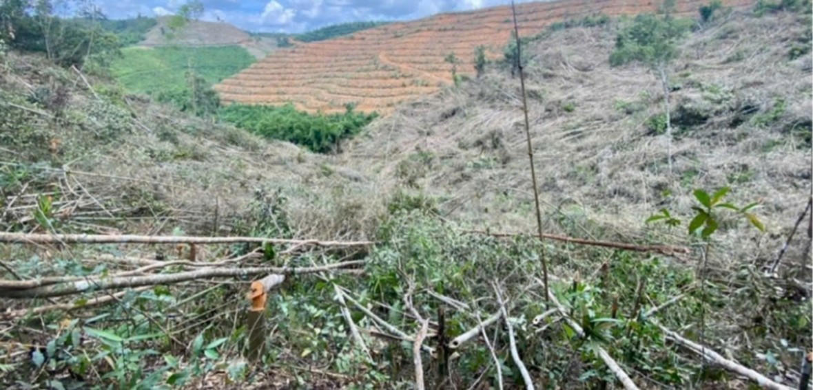 Theo đó, nằm cách khu dân cư khoảng 5 km là đến nơi diện tích rừng bị phá, đường sá được san ủi phục vụ cho quá trình đi lại, các phương tiện có thể đi lên tận nơi để tiếp cận hiện trường.