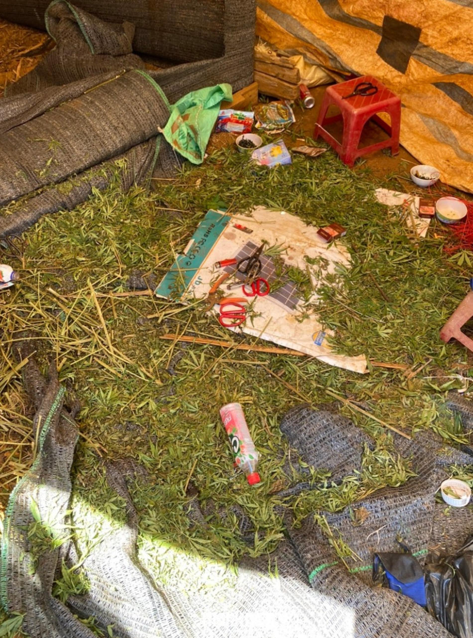 Cần sa được đối tượng Ngọc cắt nhỏ để phơi khô, chế biến ( Ảnh: P.T)