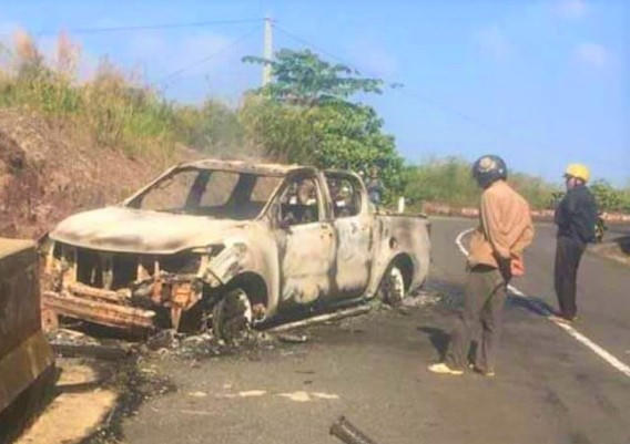 Một chiếc xe bán tải cháy nát trơ khung trên quốc lộ 28 được người dân phát hiện và trình báo đến chính quyền địa phương, điều đáng chú ý là trong xe có một thi thể cháy rụi chưa xác định được danh tính.
