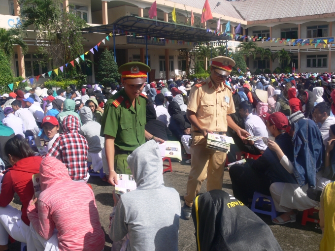 | Phát tờ rơi tuyên truyền Luật Giao thông. |