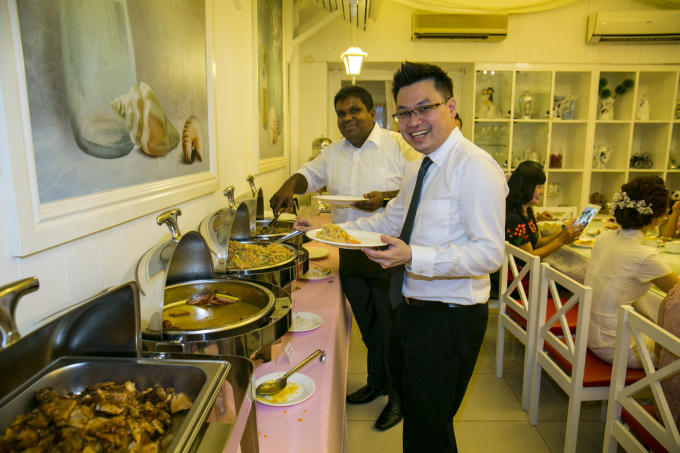 Không phong bì mừng, không nhạc xập xình hay lời dẫn chương trình thao thao bất tuyệt của MC, lễ cưới được tổ chức trang trọng nhưng không quá ồn ào...