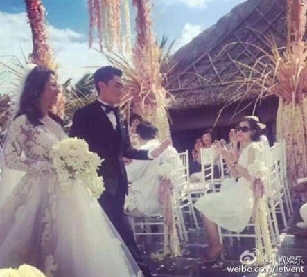 Tham dự đám cưới có sự góp mặt của rất nhiều ngôi sao nổi tiếng như: Phạm Băng Băng, Hồ Ca, Ngô Kỳ Long - Lưu Thi Thi, Châu Tấn, Lưu Đào... Các ngôi sao đều chọn trang phục phù hợp với dress code của đám cưới - màu trắng và vàng nhạt.